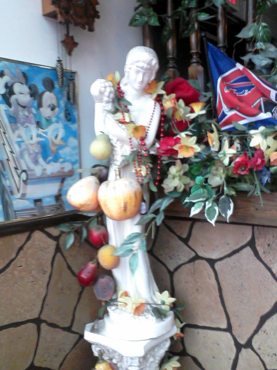 What do you think? What’s your favorite part of this statue? Is it the Bills flag in the background or the fruit hanging from the figure’s neck?