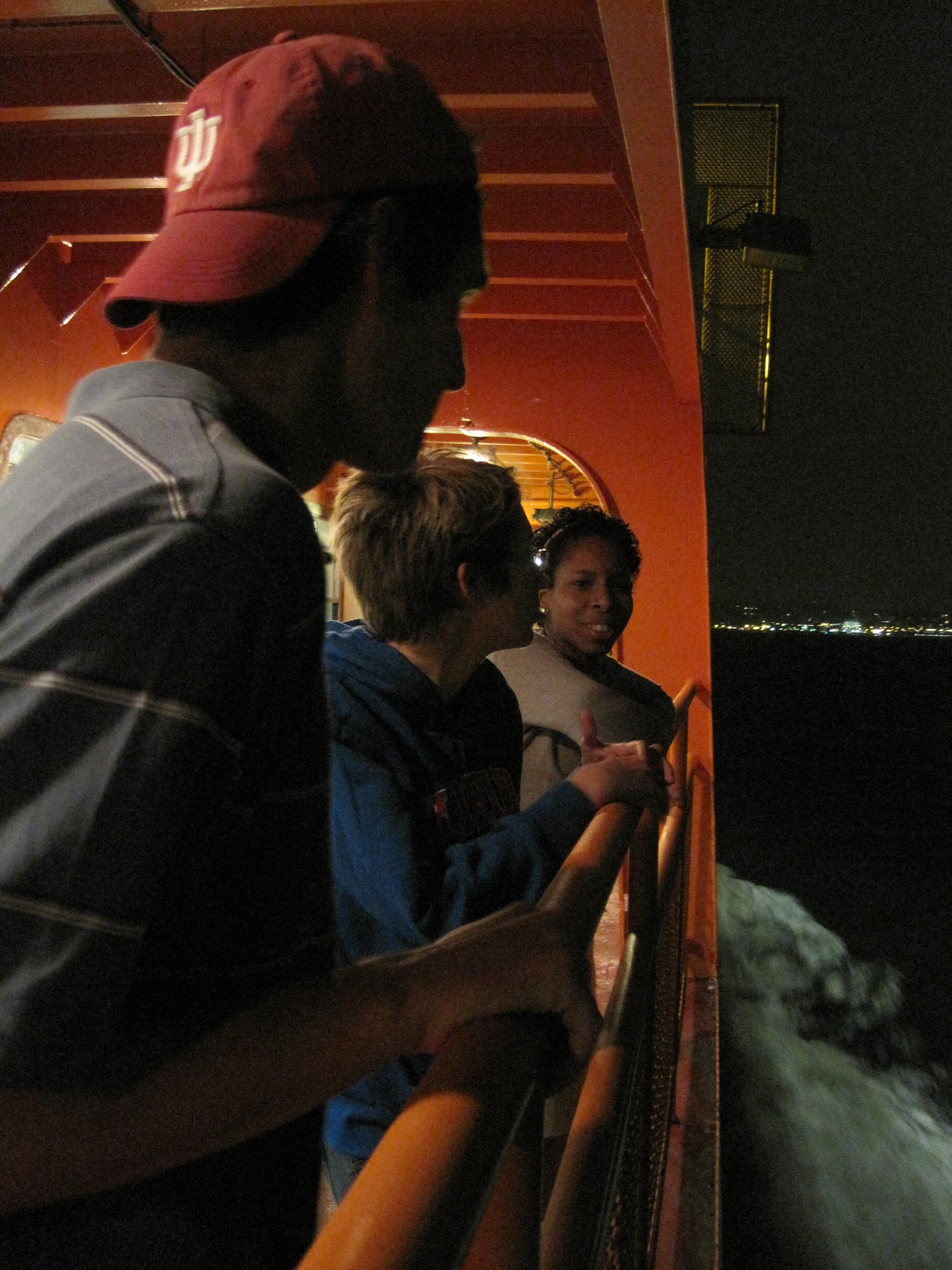 Being on the boat is therapeutic. On the way down to the southern tip of Manhattan, you bump against so many people. The lights are bright, and the buildings surround you. But on the ferry, I think of all the people I had passed on the street and how they become small specks, part of one collective thing — the city.
