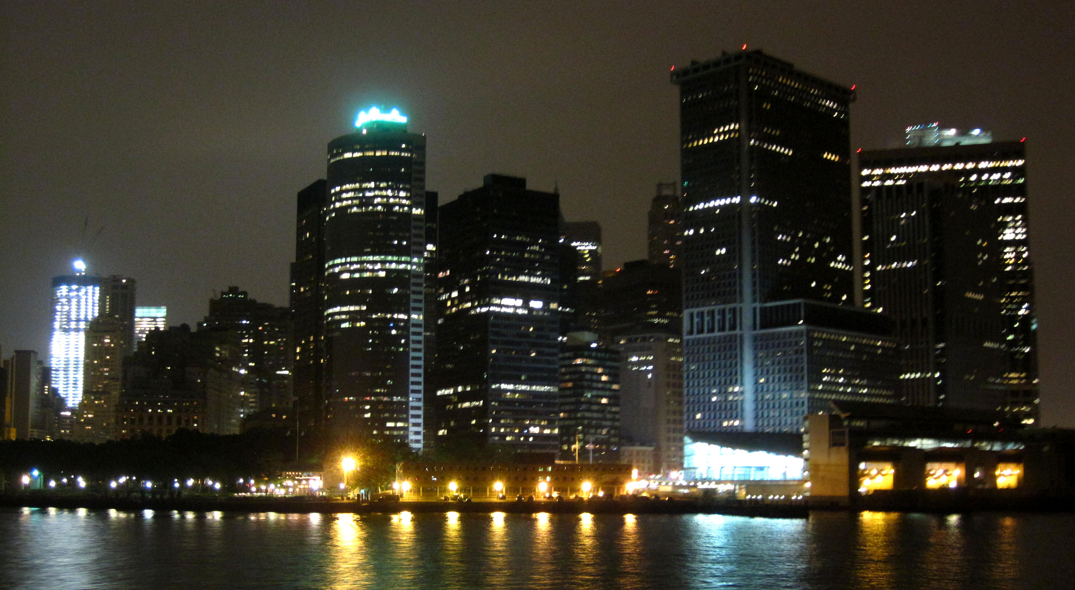 If I lean over the railing, I can pretend I’m escaping the vessel, which most people use to go to work and go home. I can ignore the orange paint and the dull yellow lights behind me and put myself in the dark. As poetic as it seems, I wish I could leave the boat midway and drift in the middle of the water (without having to swim or get wet or get eaten by a shark or poisoned by pollution). If only I had my own personal boat… The wind was ferocious. Girls: pull your hair back. The first time I went was with my DJNF friends. We departed at 11 p.m. and returned to Manhattan at midnight — half an hour each way. I also went with Meaghan on her visit. While in the area, we explored the financial district and visited the World Trade Center site, reminiscing on that infamous day in 2001.