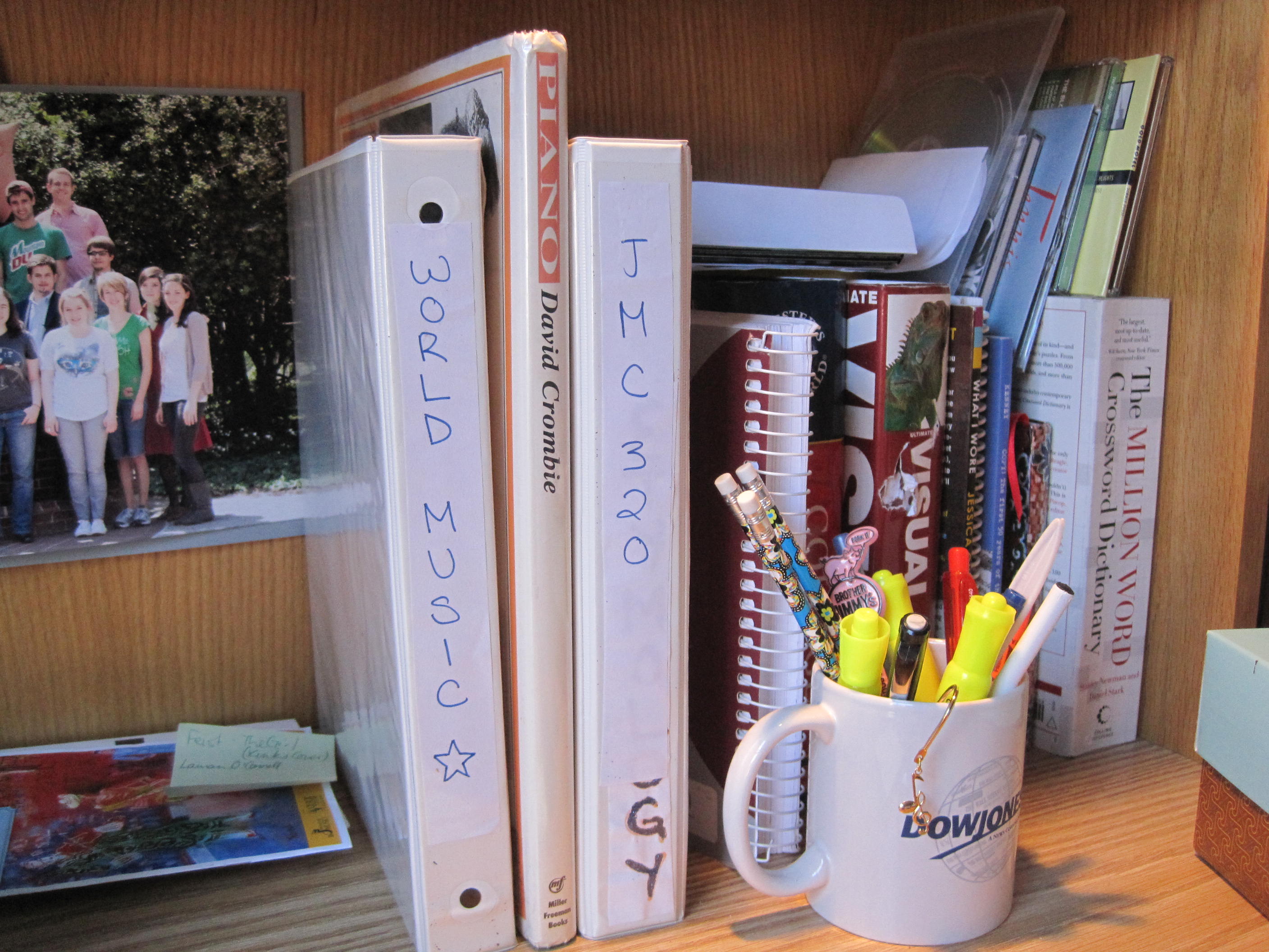 Snapped some photos of my desk today. I think they accurately describe who I am. Most of these books were gifted to me, some I bought and some are borrowed from the library. There are a lot of memories from this summer – my mug, our DJNF group photo and all those books…
